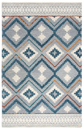 Rizzy Home brings you this transitional rustic style hand-tufted rug. This charming rug is made of durable, 100-percent wool and features a captivating diamond pattern with hues of blue, brown, tan, and black. This rug is great for high traffic areas and is perfect for any room in your home or cabin.