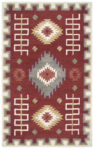 Looking to warm up your hard floor? This Southwest/ contemporary rug is the answer. it's Hand-tufted in India using 100-percent pure wool in a loop pile construction creating a sumptuous feel and textural appearance. It has a gold, rust, and brown pattern with geometric designs, perfect for elevating any chic room.