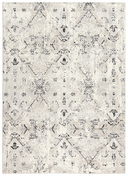 Outstanding is the word for this grey on ivory Rizzy Home Palace rug. The 100-percent polypropylene has been power loomed making an affordable design difficult to distinguish from a much more expensive variety. Our goal is to enhance your space with charm and fashionable elegance. The unique design will thrill you and the cleaning is easy by blotting with a clean sponge or cloth.