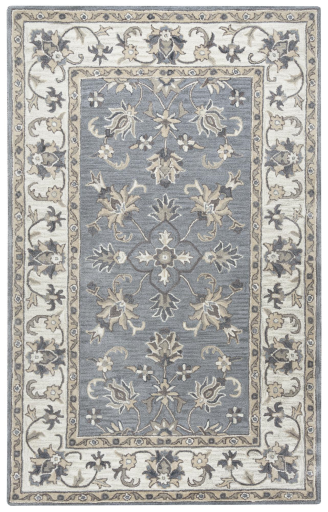 Unique design in 100-percent wool for extra softness and luxury makes this a perfect rug for a transitional shabby chic style home. The Valintino Grey, Tan, and Ivory Rug by Rizzy Home is hand-tufted and features a beautiful border design that fits well into any space within your home. The muted colors make this piece a perfect choice for blending well and brings a sense of peace to your bedroom, living room, or office.