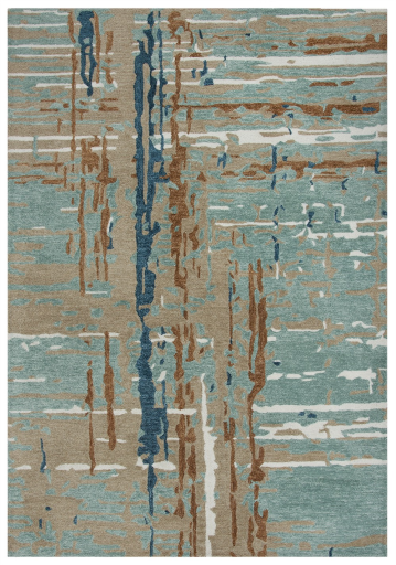 Rich blues and copper tones percolate and run through a field of neutral beige and teal on this Rizzy Home Metro Abstract Rug. Made with 100-percent recycled polyester for durability and softness, this piece is constructed with hand-tufted fibers for a quality and enduring piece of floor art. Water resistant and easy to clean, this rug can be used either indoors or outdoors in conjunction with your modern or transitional style decor.