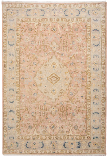 This gorgeous rug from Rizzy Home's refined Tuscany Collection is handcrafted with meticulous care and centuries-old construction techniques. This artisanal masterpiece exudes classic grace and artisanal charm. Hand-knotted to perfection with a cut pile, every fiber of this rug is 100% wool, ensuring both durability and luxurious softness underfoot. Its captivating color palette blends shades of soft pink, dusty rose, ivory, beige and dark blue to create a stunning symphony of colorful hues that will effortlessly complement any interior. Embracing a traditional yet transitional design, this rug boasts a mesmerizing medallion pattern, bordered with intricate details that add a touch of sophistication to any room. Each rug is hand-finished and hand surged in India, showcasing the dedication and expertise of skilled artisans.
